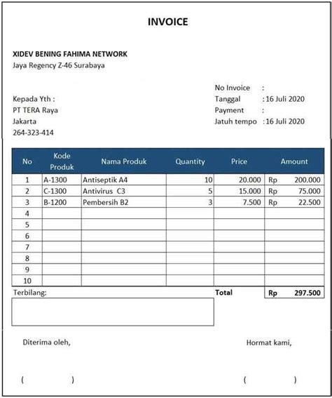 Contoh Invoice Tagihan, Faktur Penjualan Pembelian, Template Excel